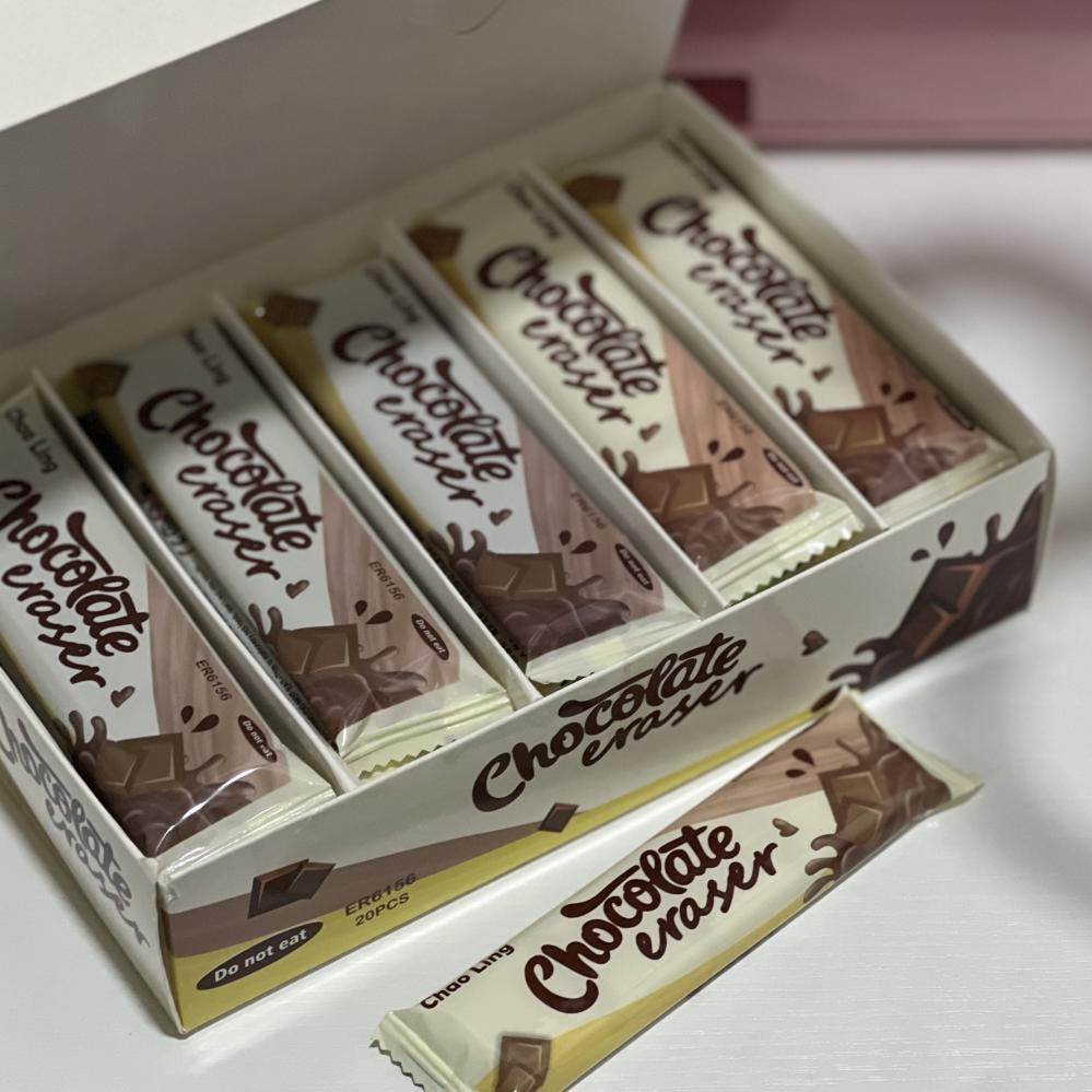 هذا اللي قدامكم عبارة عن بوكس فيه 20 ممحاة على شكل شوكولاتة