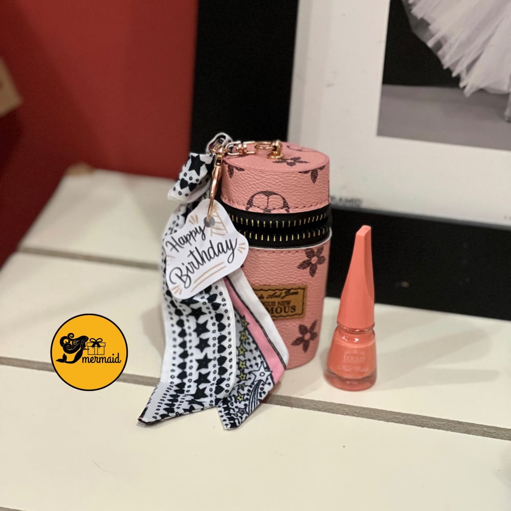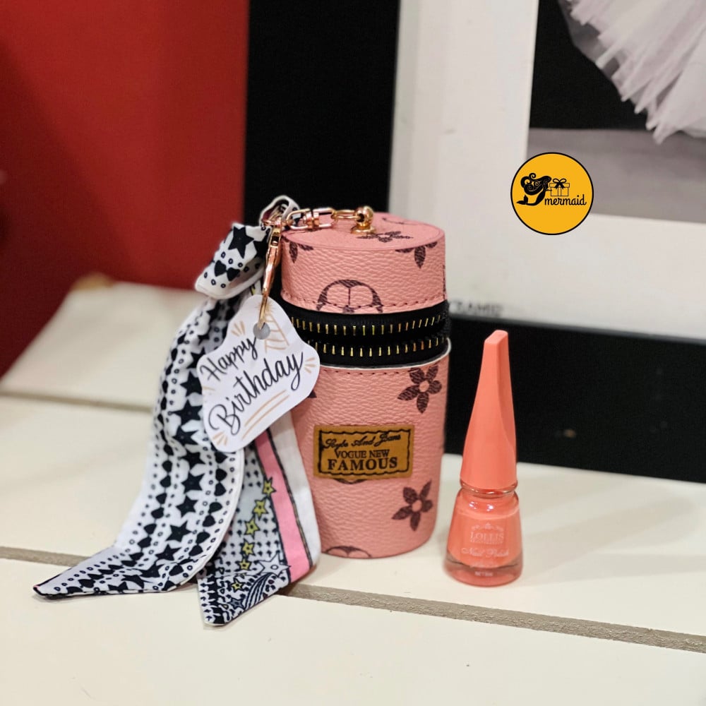 تشمل محفظة مُتقنة بجودة عالية داخلها مناكير مُزينة بشال وعبارة او اسم من اختياركم