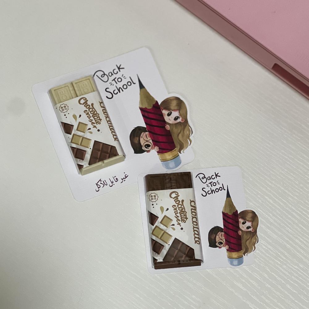 عبارة عن ممحاة مدرسية على شكل شوكولاتة 😍 وبتنسيق لطيف