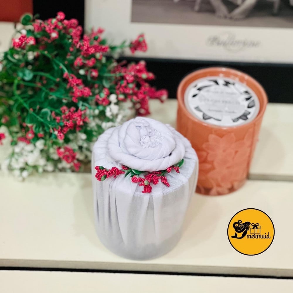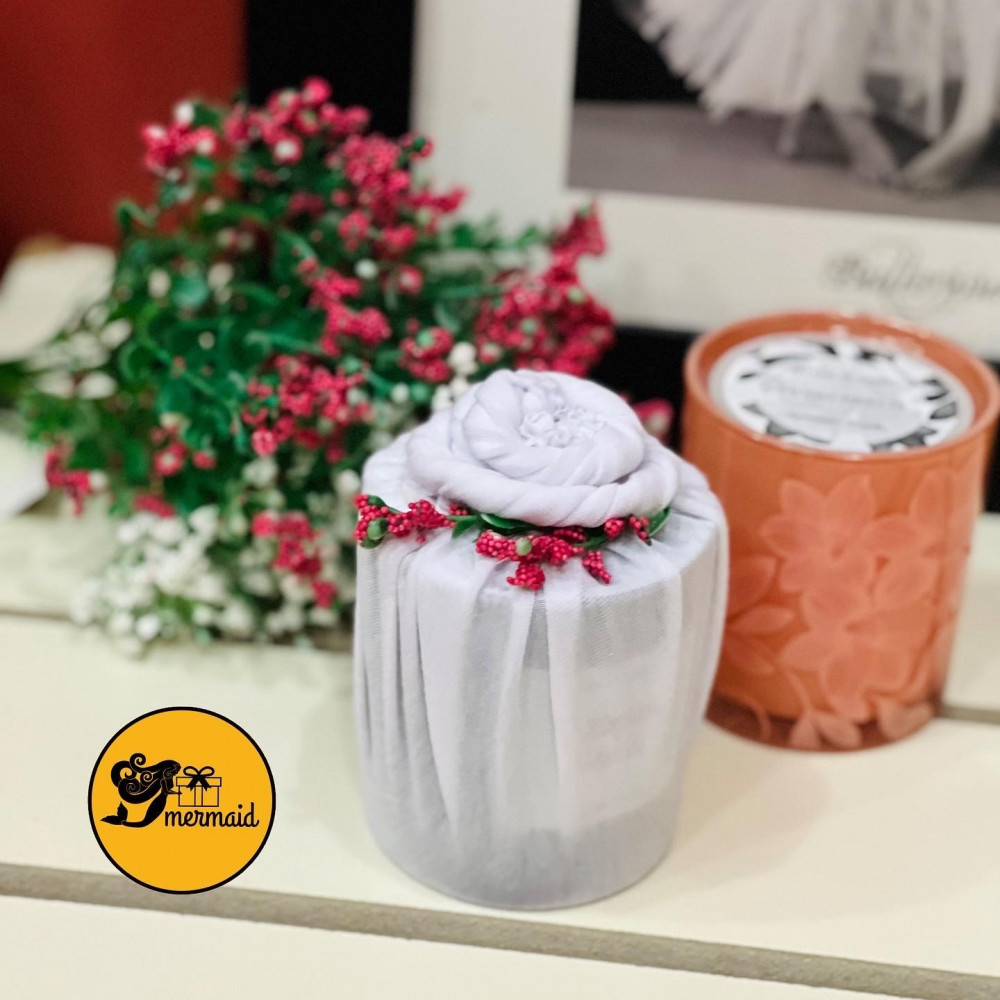 توزيعات شموع راقيه بالتغليف الياباني، مُزينة بالورود بشكل انيق🕯 "حجمها ليس صغير"