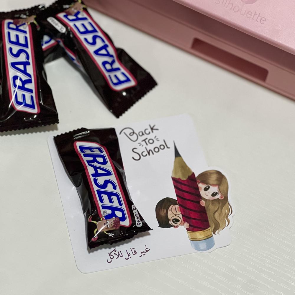 عبارة عن ممحاة مدرسية على شكل شوكولاتة مارس 😍 وبتنسيق لطيف